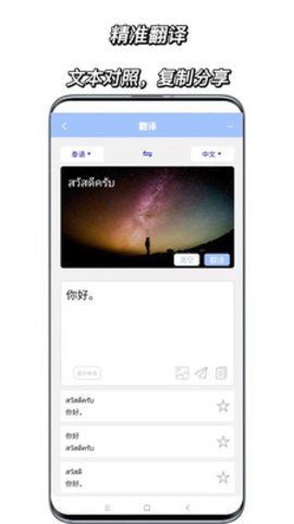 1、文本翻译:接入泰国本土字词库,精准极速地道的中泰文互译
