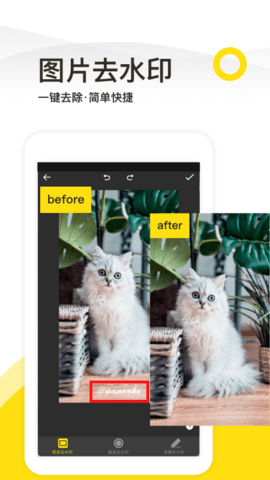 1、所有的水印删除功能都为您带来了良好的效果。你可以自信地拍出好照片。