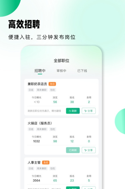 2、让企业针对不同岗位展示最合适的广告,快速吸引更多有潜力的求职者。