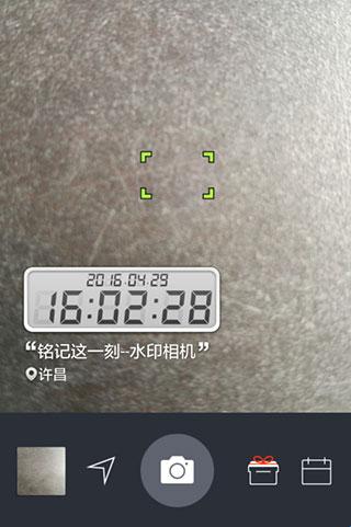 4、进入相机页面,点击“水印”,确定“日期地点水印”。