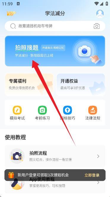 学法减分拍照搜题是一款交通法规知识在线答题软件,汇集海量真题,帮助你轻松学习交通法规知识,提升驾驶文明素养,界面简洁明了,操作方便简单,通过拍照上传的方式可以快速识别题目并为你提供答案,还有模拟考试等中央功能让你可以自主联系,加深对交通法则法规的掌握,对于一些驾考考试也非常有帮助哦,喜欢的小伙伴们快来体验下载吧!