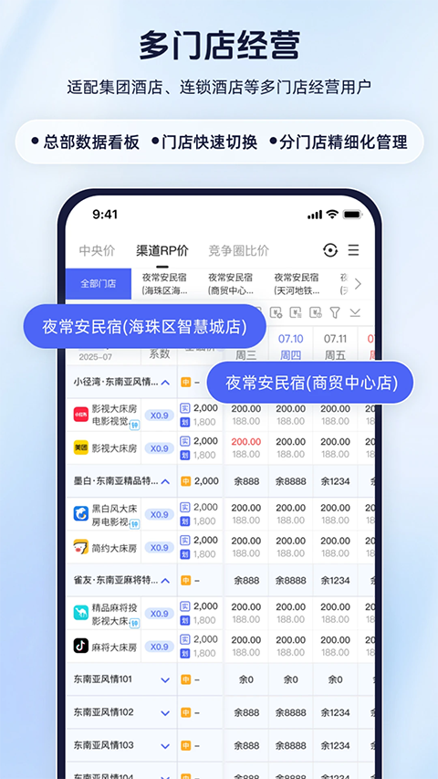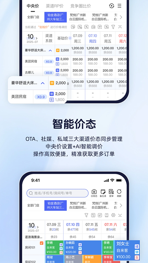 精细化管理每日的入住/离店/空房/关房,高频次日常工作便捷实现。