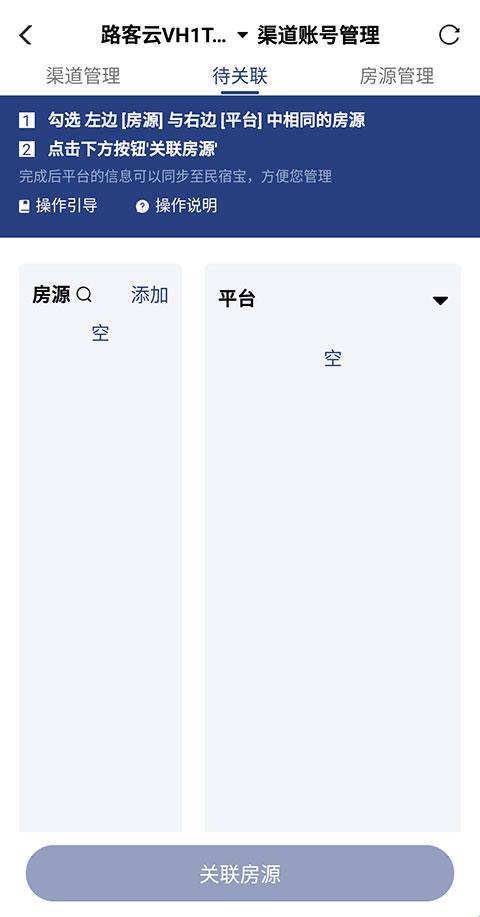 5、入驻第三步,【关联房源】,勾选平台房源和路客云App上相同的房源,进行关联。