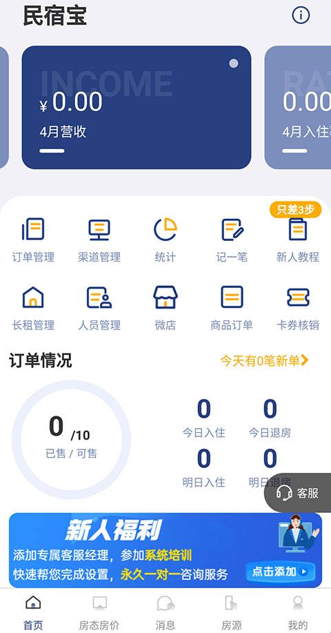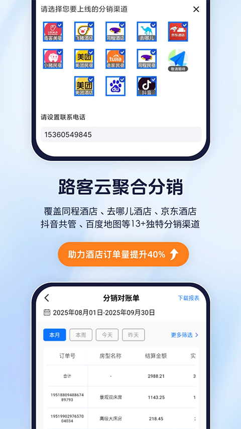入住率、订单来源、经营报表等多维度数据,可按日期选择图表展示一目了然。