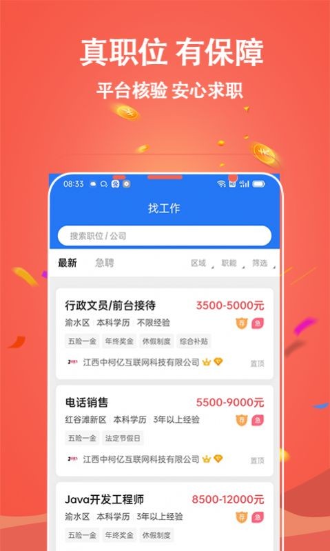 1、通过智能匹配算法,为求职者推荐符合其职业背景和兴趣爱好的职位,让你直接去搜索;