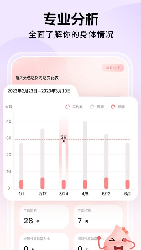 3、通过提供经期的周期间隔和长度,自动科学定位出安全期、危险期和月经期