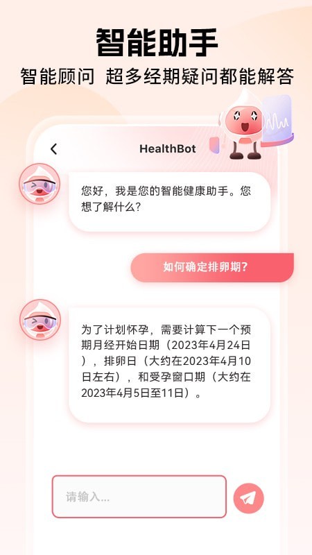 为您提供贴心的经期智能服务。无论你是想了解更多的经期知识,还是想让我们为您提供一对一的深度健康分析报告,或者只是寻找情感陪伴,我们的AI经期秘书都能满足您