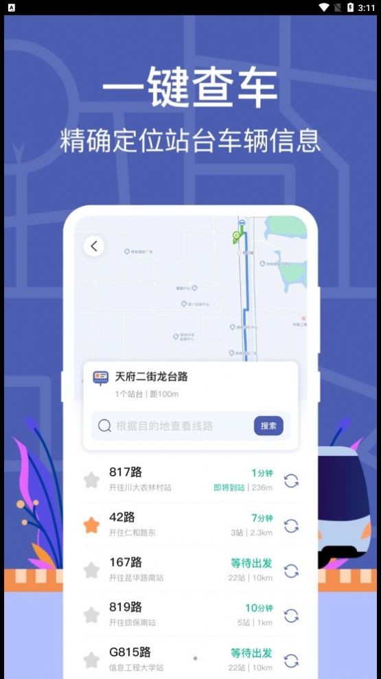 2、轻松地查询公交线路、车辆位置、以及到站预估时间等信息,大大减轻了您的出行压力和不确定性;