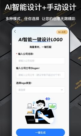 1、ai智能一键设计:输入公司标题,宣传口号或副标题,选择您的喜好,即可一键生成logo!
