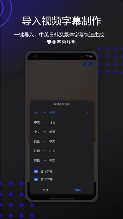 支持中文、英文、日文、韩文四国语言的识别和翻译字幕,支持繁体字幕,快捷视频字幕编辑、校正