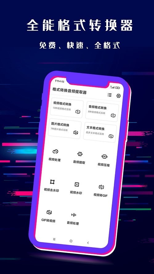 闪电格式转换器app是一款功能非常实用的手机格式转换软件,可以轻松编辑PDF文本、图像,添加自定义图形,强大的功能超简单的使用方法快速编辑您的PDF文档。并且非常的快速,许多格式都是支持的,这个软件功能也很多,可以满足大家的各种需求,一个平台就可以处理各种音频,非常的方便好用,可以很好的满足不同用户的需求,操作也是非常的简单,而且软件体积小也不会影响手机内存运行,可以放心使用,感兴趣的用户快来下载体验吧!