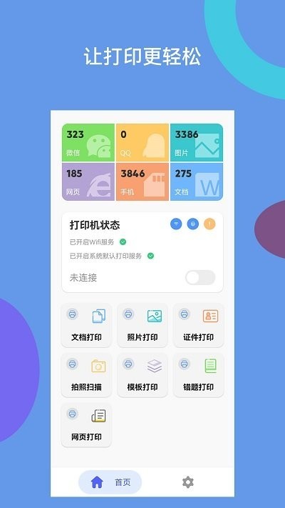 爱佳能打印机全能王软件是一款非常好用的无线打印app,该软件所适配的打印机型号是非常丰富的,所支持的打印文件格式种类也是非常多的,软件首页所提供的特色功能是非常齐全的,小伙伴们可以根据个人需要进行选择使用,自由配置、线上编辑,实用便捷,有需要的小伙伴们快来下载爱佳能打印机全能王体验吧!