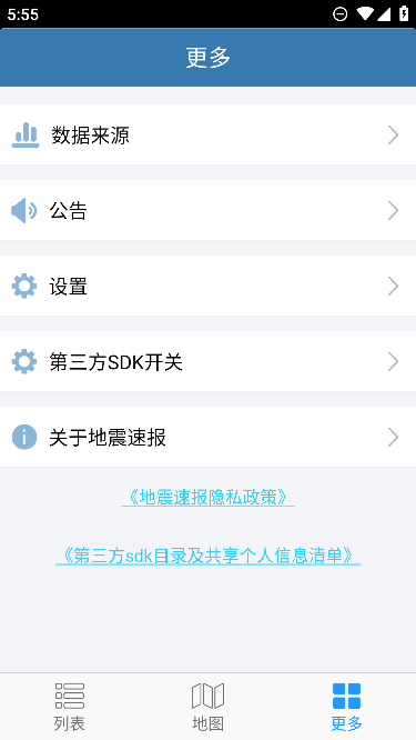 1、在“地震速报”APP的界面中,点击下方的“更多”图标按钮。