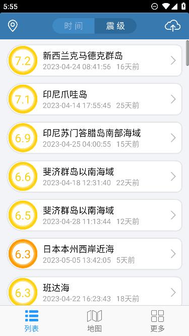 2、用户可以刷新获取最近30天内的地震信息;