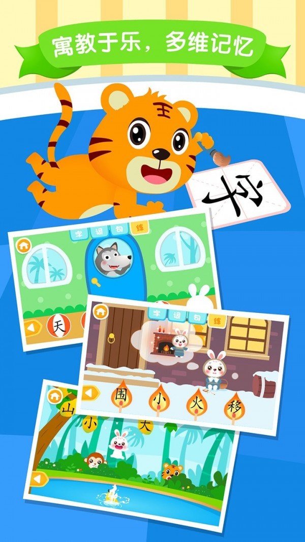 贝乐虎识字APP是一款专为3-8岁儿童打造的识字软件,为3-8岁家庭提供互动化、视频化、多元化的儿童内容。软件汇聚了1500个常用启蒙汉字、优选500汉字精学精练,以字、词、句、练四个步骤循序渐进,通过寓教于乐的方式进行引导和塑造,逐步培养孩子的识字兴趣。贝乐虎识字APP通过象形、图形、组词以及造句等方面,让孩子全方位进一步了解汉字,搭配可爱的萌宠动画,增强孩子对汉字的理解能力,采用多元的方式帮助孩子了解汉字的起源、领略文字之美!