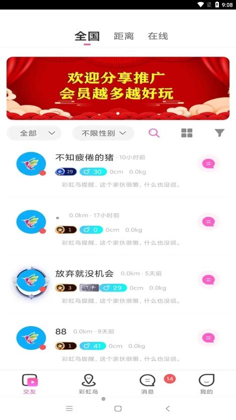3、学习忙碌,不知道怎么交友,来彩虹鸟吧。工作忙碌圈子小,而找不到属于自己的心动对象,来彩虹鸟吧。
