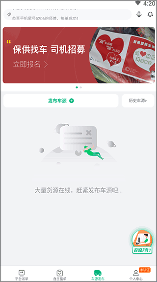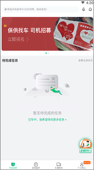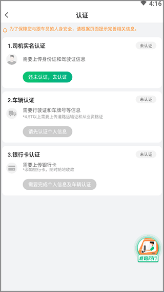 1、下载安装好运荔枝司机手机版,需要完成实名认证、车辆认证、银行卡认证才能进行接单。