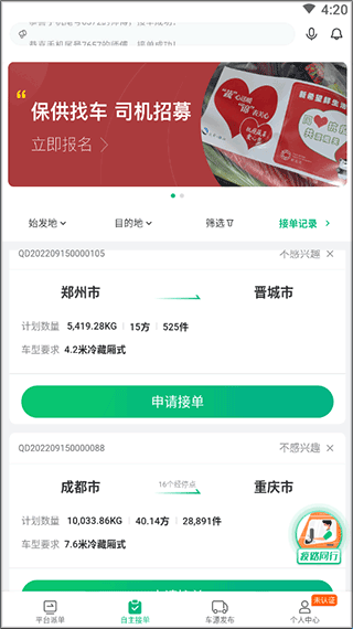 4、提供司机在线接单,在线查看订单始发目的地,及时高效完成货物配送。