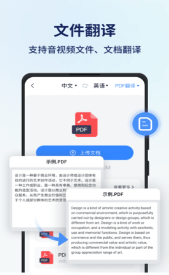 该软件支持各种格式的文件翻译,如:word翻译、ppt翻译和文字翻译等,帮助用户解决问题。