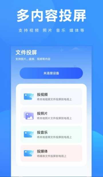 1、提供多种投屏方式,包括无线投屏、有线连接和蓝牙连接,以适应不同设备和网络环境;