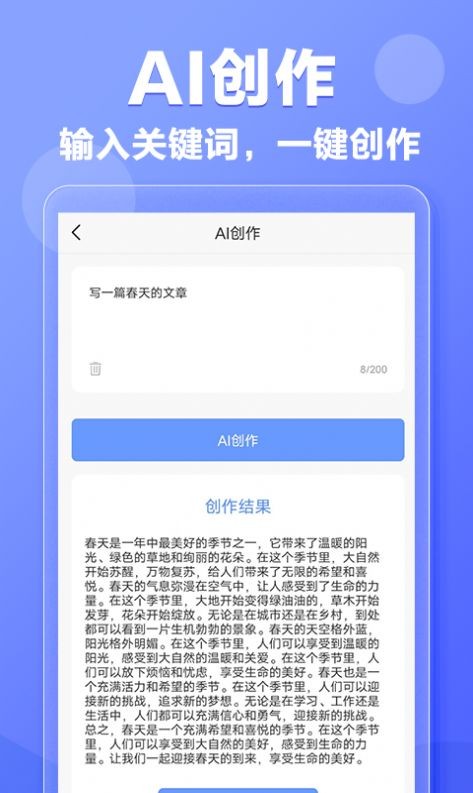 2、并给出一个基于关键词模板的完整的文章,这项特别功能真正支持用户高效地创作文章,花费更少的时间和精力达到更高的写作效果。