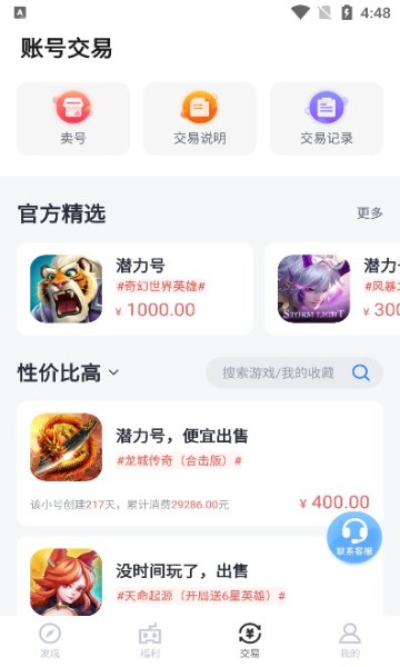 3、账号安心买卖:真实个人游戏账号,安心买卖,让你轻松淘手游。