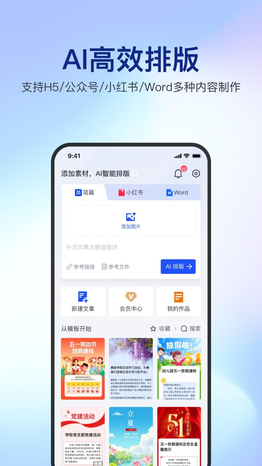 简篇是一个专为工作场景打造的长图文制作工具,这款应用里面拥有海量模板,满足用户的各种创作需求,包括图片、文字、视频等各种类型。用户只需要在这里简单替换文字,加入图片即可成文,小白也可以轻松制作,而且你也能在文章中插入图片、文字、视频、位置、音频等组件,让你在几分钟内就能写出像公众号一样图文并茂的文章,并且还可以随时随地可修改,不限编辑次数,除此之外,这款应用不仅操作简单,还能轻松分享,非常适合运用各种工作场景,非常方便用户的使用。