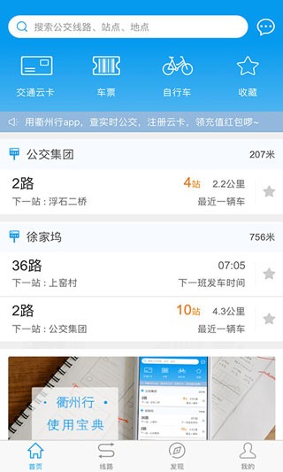 3、线路收藏:收藏线路直接在APP首页显示。