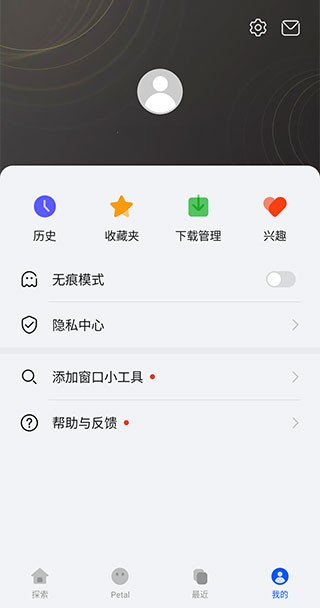 1、Petal搜索的界面是非常简洁的,首页只有八个元素,顶部的Petal logo、搜索栏、搜索栏里的语音和扫描、底部的探索、Petal、最近、我的。也正是这个页面,受到了不少网友的好评,清爽、简洁、无广告是主要评价,尤其是与目前国内一些搜索引擎相比,会形成比较大的反差。