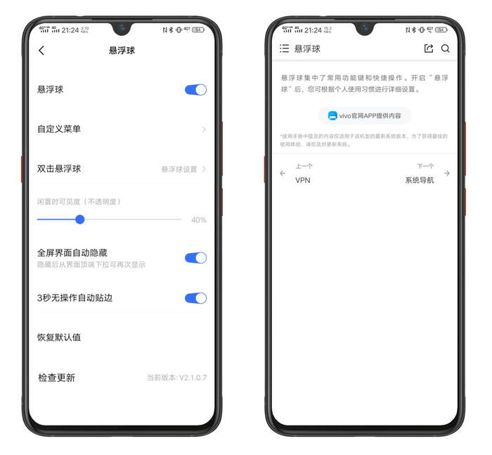 vivo悬浮球app是一款专门为vivo手机提供的桌面悬浮球工具,它的功能很多,首先你可以自定义调整悬浮球的大小以及位置,直接点击它就可以打开或者关闭手机,也可以进行截图,非常好用,使用手机更加方便。
