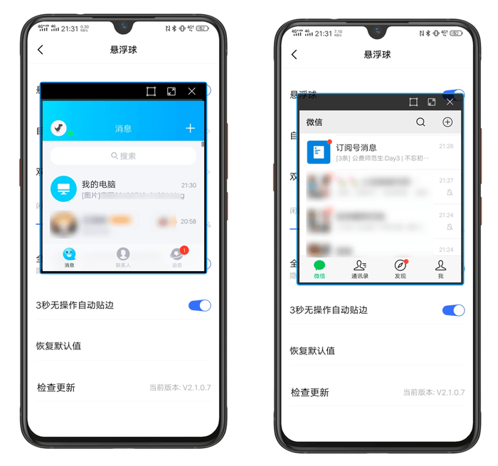 4、悬浮球还可以通过拖动来改变位置,长按悬浮球可以进行一些特定操作,如多窗口管理、实用工具等。