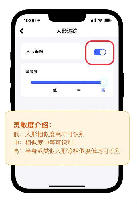4、你可以自由设置灵敏度来操控人形追踪功能。