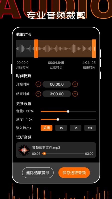 任意音频一键即可自由剪切,简单又方便!让你从音频中快速截取自己需要的部分导出或者进行文字识别,省略多余部分的文字识别过程。