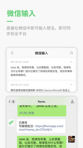 1、聊天式输入:像发微博一样,无压力记录想法。