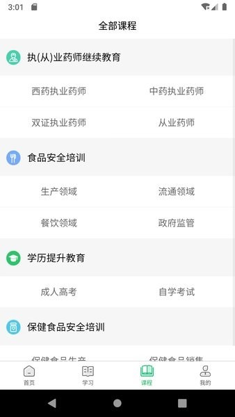 1、拥有多样的课程筛选标签,提供众多快捷筛选标签,比如餐饮领域、自学考试以及政府监督等。