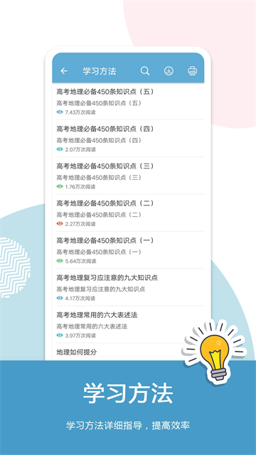 2、能够为高考考生提供全面的地理知识及历届的考试真题卷,涵盖范围广,知识讲解全面,是考生快速提高地理成绩的好帮手。赶紧来下载体验呗