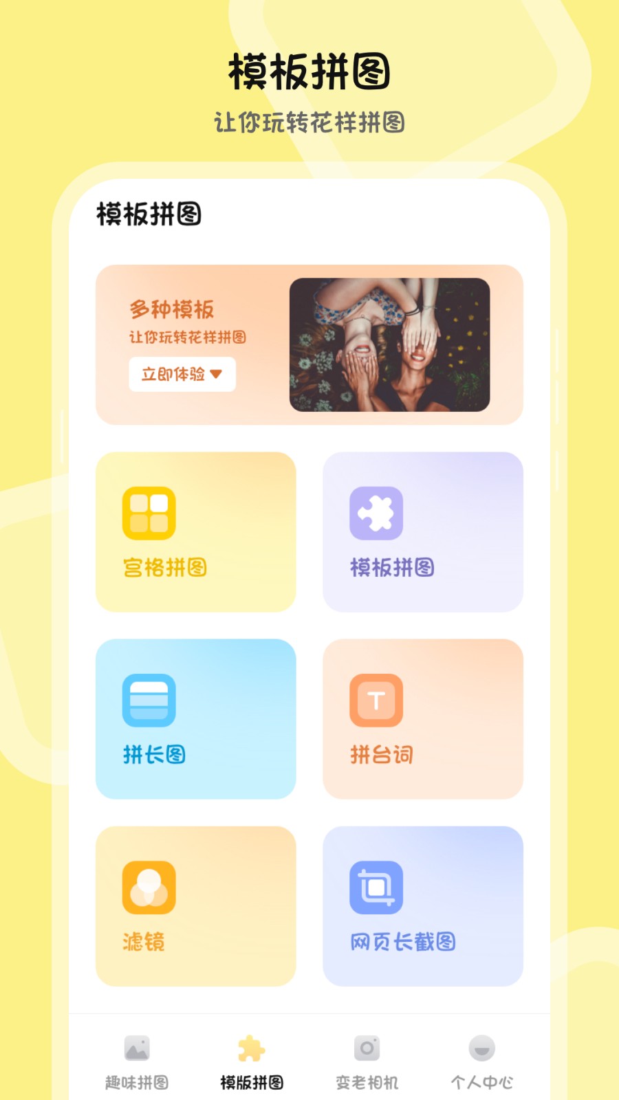 2、模板拼图,您可在手机上看到模板拼图、长拼图、线拼图等许多图片合集,体验更畅快的p图方式;