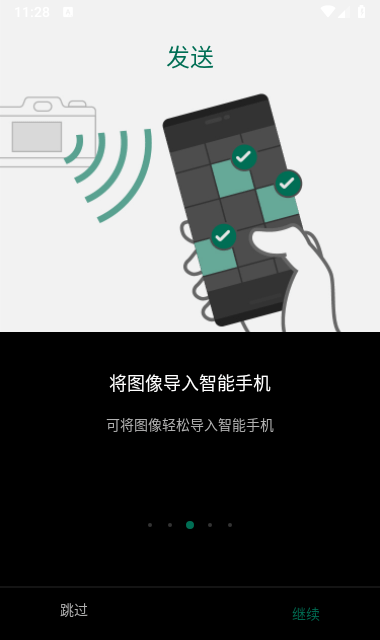3.同时轻触智能手机中的 Connect(衔接) 和相机中的“衔接到智能手机”图标。