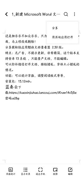 4、 解决微信排版问题:与微信内置的文档查看功能相比,魅族文档查看器能够有效解决微信打开文档时可能出现的排版错乱、字体大小混乱等问题,为您提供清晰、准确的文档展示。