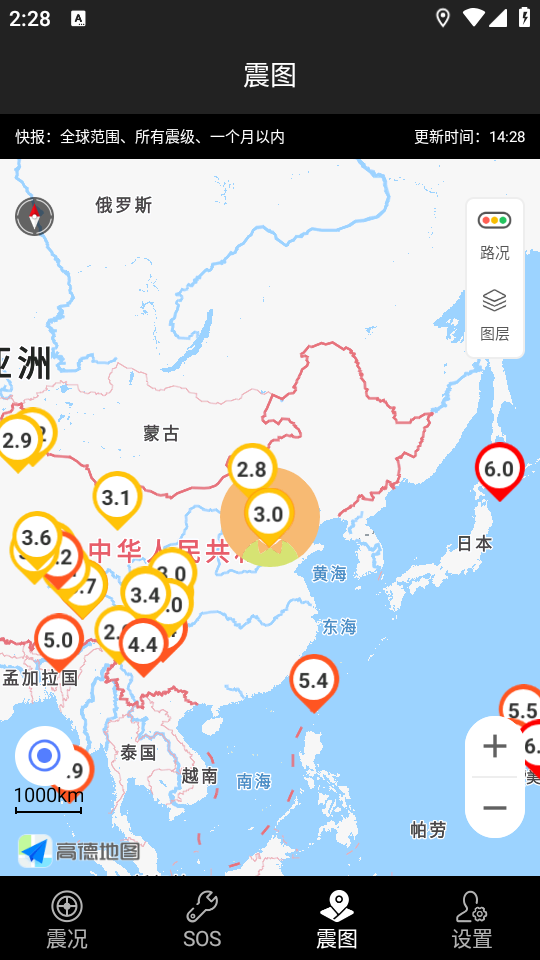 4、实时查询:通过列表和地图的形式展示全球范围内实时地震讯息,可以筛选地震范围、地震时间和地震震级。