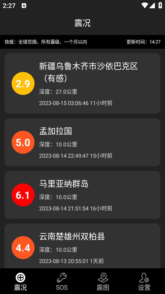2、提供多维度的地震信息查询,包括地震级别、地震时间、震源深度等。