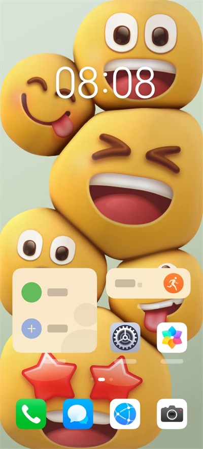 4、emoji壁纸的主题名字叫趣味心情,我们可以在这个壁纸下选择最多六个表情符号,这些表情就会按照先后顺序堆叠在屏幕里面,不同表情挤在一起的凹陷跟阴影也做了拟真,看起来还挺可爱的。