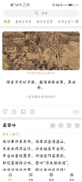 4、用户可以点击有兴趣的古诗,软件下方会有详细的注释。