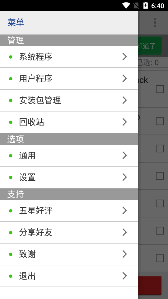 5、更可以点击左上角的按钮、进行菜单管理、其内包含的功能十分的丰富、比如系统程序、用户程序、安装包管理等等、用户可根据自己的选择来管理系统;