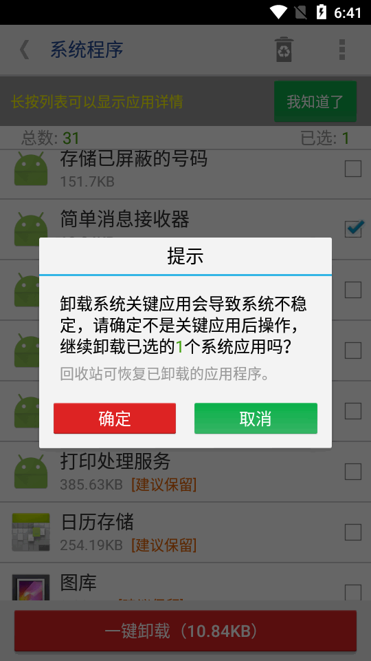 3、自动备份卸载后的应用、您可以在回收站里彻底删除或者还原他们、并可自定义回收站目录。