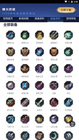 3、展示了游戏内的所有英雄展示、技能解析、出装推荐