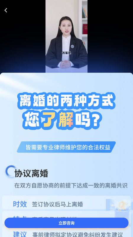 6、可以通过该软件与离婚律师进行在线咨询,随时随地获取专业的法律建议和意见。