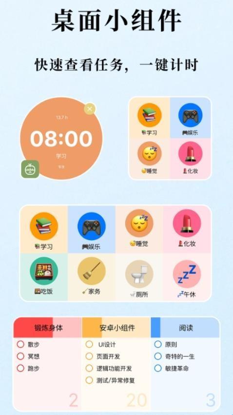1、高效办公:一款专注于办公效率的软件,帮助用户高效地管理和规划自己的时间。