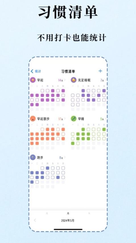 2、时间统计:支持时间的统计功能,帮助用户清楚了解自己各个活动的耗时情况。