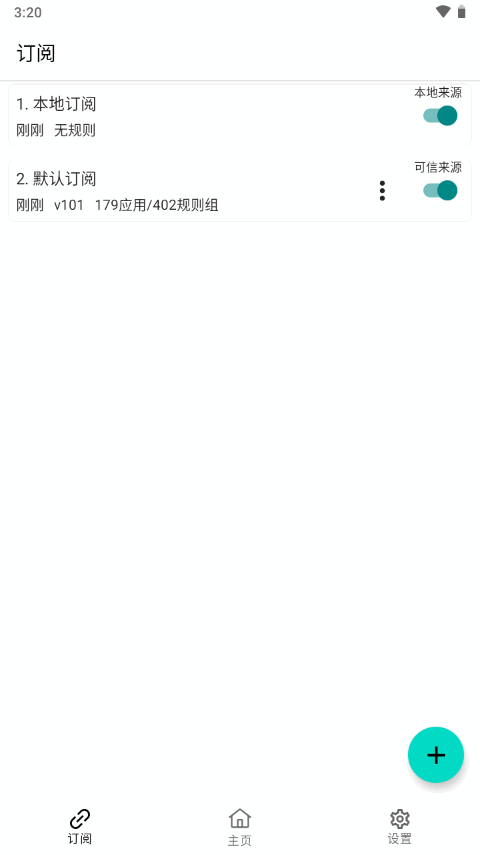 2、点击【订阅】,进入订阅界面,查看订阅规则,APP分为本地订阅和默认订阅,点击【默认订阅】